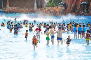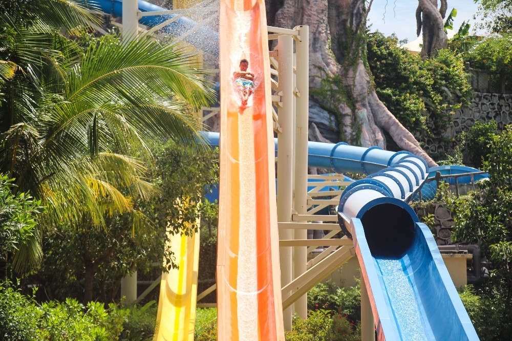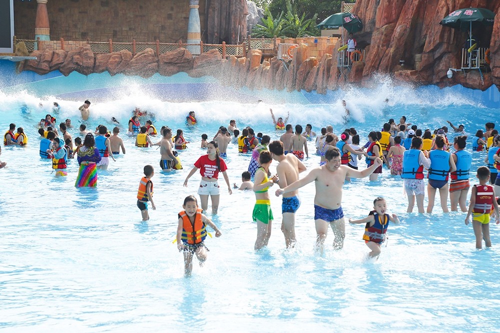 樂園目前配備12套大型游樂設施,近百條戲水滑道。其中包括垂直距離高達28米、下滑角度70°的國內頂尖心跳滑道——尖峰時速;長達1350米、詮釋雨林故事的休閑漂流項目——雨林漂流;面積16000平方米、海嘯浪可高達3米的造浪池項目——颶風海嘯及歡樂海岸;被稱之為“亞洲奇跡“的長280米的超長水上過山車——水上飛龍。