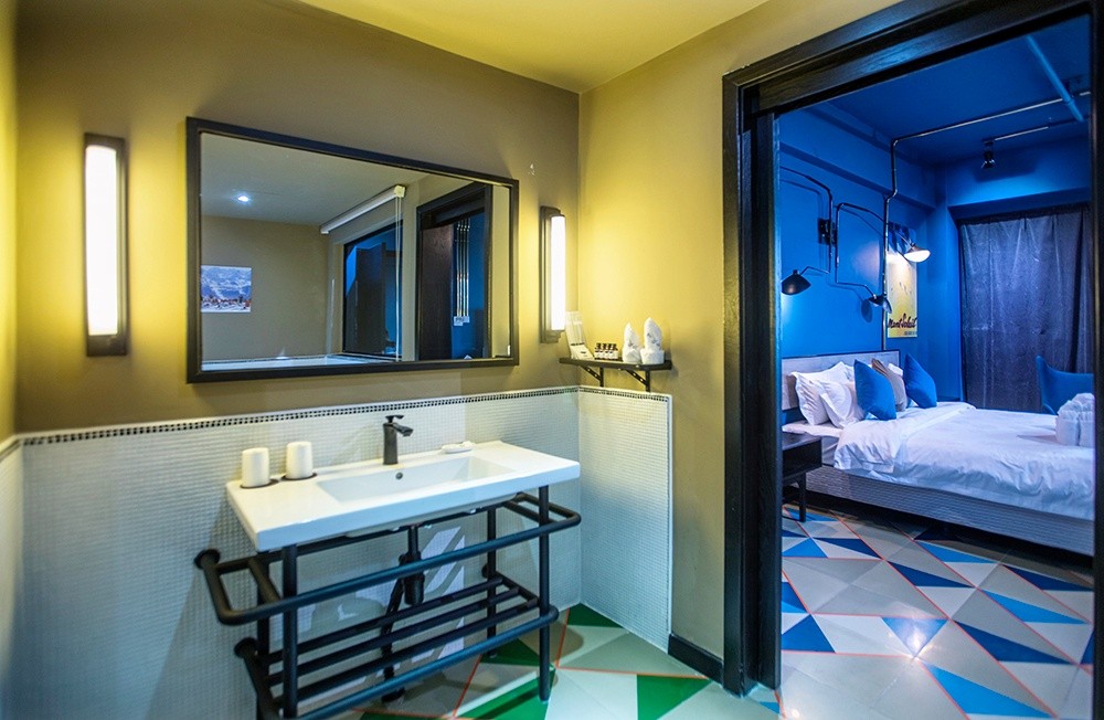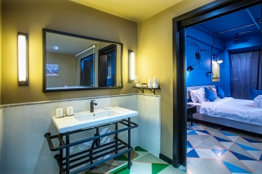 酒店有豪華溫泉大床房、豪華溫泉標準間、棋牌大床房、特色四人房等房型,特色是每間客房的平均面積有42平方米,有景觀飄窗、大浴缸、24小時熱水、干濕分離的衛生間、WIFI全域覆蓋……硬件設施配套人性化。酒店的部分客房做成了童話藍的夢幻風,夏天的時候特別受親子家庭的喜歡。