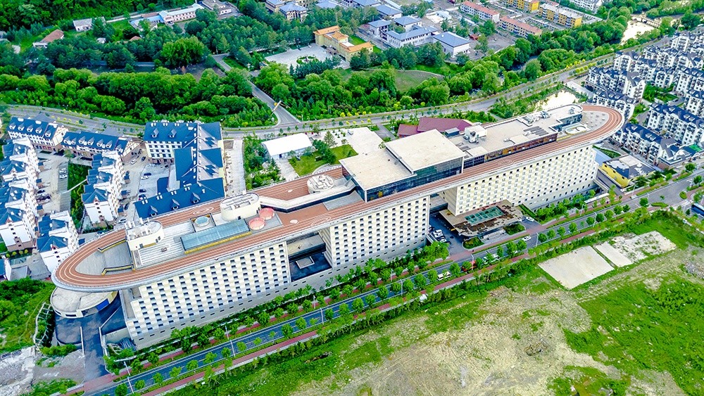長白天地度假酒店坐落于二道白河鎮,毗鄰著名的長白山博物館,離長白山北坡天池景區山門只有20公里,是一家集度假、會議、休閑、溫泉養生為一體的高星級酒店。酒店形似巨艦,設有200余間客房,同時還設有高空觀景臺,可遠眺長白山脈全貌。