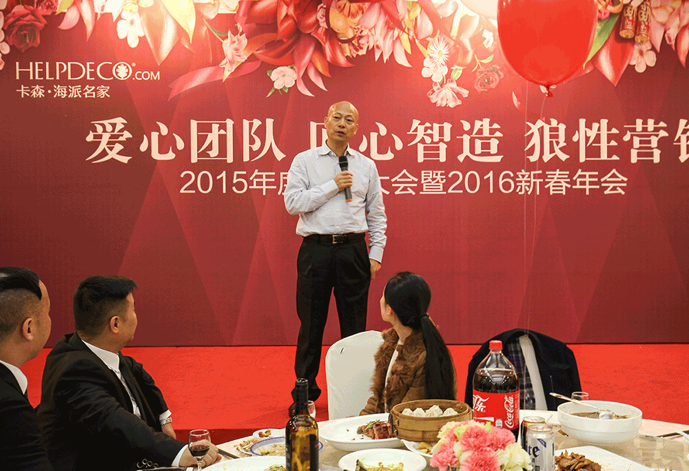 卡森·海派名家總經理史軍濤先生作了卡森·海派名家2015年度工作報告,報告中,史總圍繞此次年會的主題“愛心團隊 匠心智造 狼性營銷”,明確了公司2016年經營的總體規劃,包括經營目標、重點工作等。