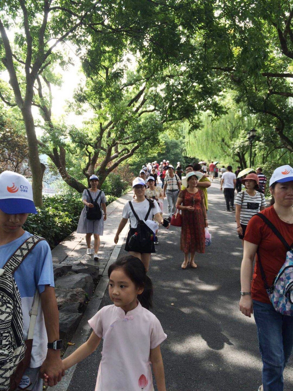 一下車,大家漫步來到了西湖邊,走在蘇堤上,紛紛感慨:西湖不愧是人間天堂啊!整個一座湖就像一面大鏡子,倒映著湖邊的美景,照出了大家歡樂的心聲。湖堤兩岸長滿了柳樹,柳樹依舊像春天那樣充滿著蓬勃的生命力,枝條長得已經垂到了湖面,宛如一個美麗的少女正在清洗她那長長的黑發,微風乍起,柳枝擺動,仿佛是風在彈奏悠揚的豎琴,也仿佛在歡迎我們恒森一家人的到來。在這如此美的景色下,有的員工拿出手機拍照留念,有的員工結伴倚在湖邊的長凳上,相互聊天拉家常。