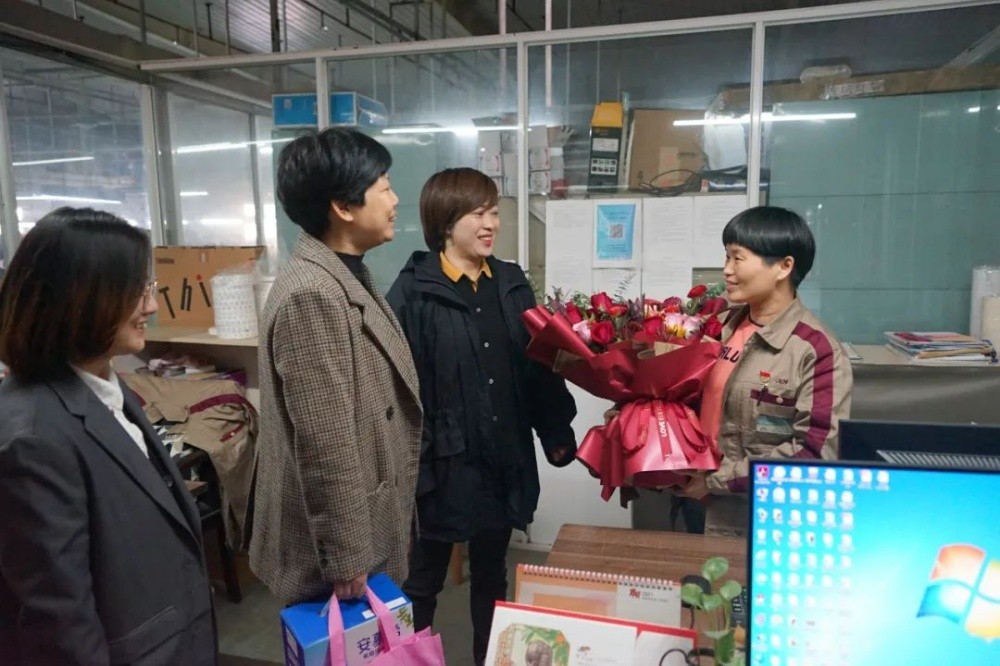 11月11日,斜橋鎮婦聯主席蔡丹薇等在集團婦聯主席顧麗萍的陪同下到斜橋廠區慰問“全國三八紅旗手”、“浙江省勞?!崩蠲魅A,給她送去了鮮花和問候。