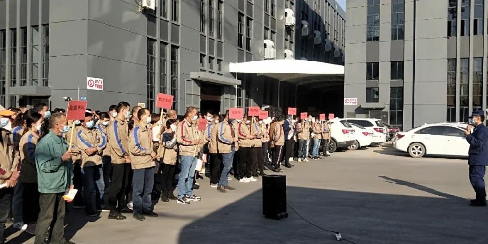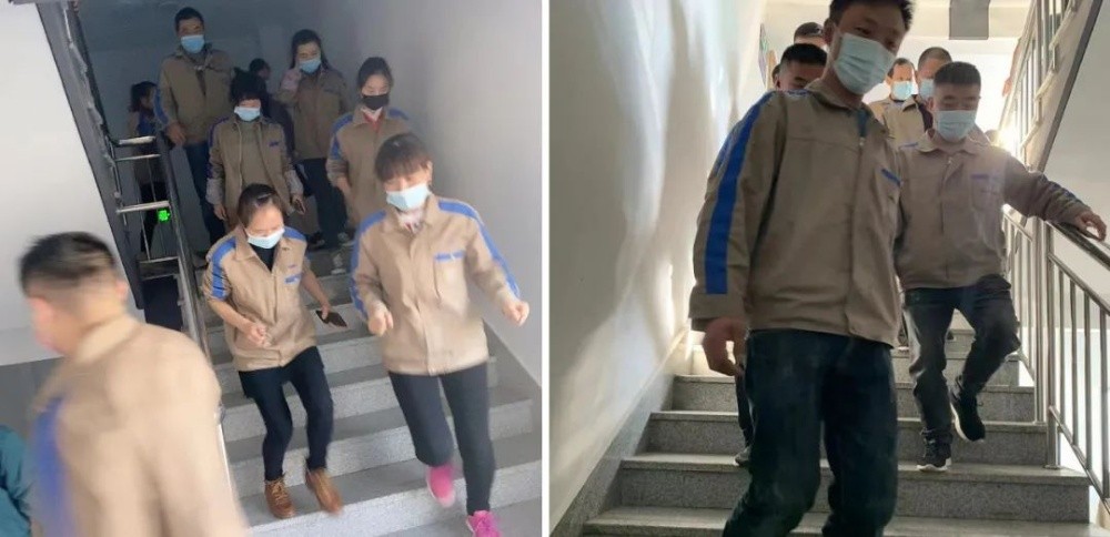 隨著警報響起,應(yīng)急疏散演練正式開始,班組長在各車間門口引導(dǎo)員工迅速離開車間,員工用濕毛巾之類物品捂住口鼻彎腰低姿快速有序地沿防火安全疏散通道向外跑,各部門負(fù)責(zé)人將員工引導(dǎo)至空曠安全地帶“緊急集合點”,隨即各車間主任清點人數(shù),并層層向上匯報。