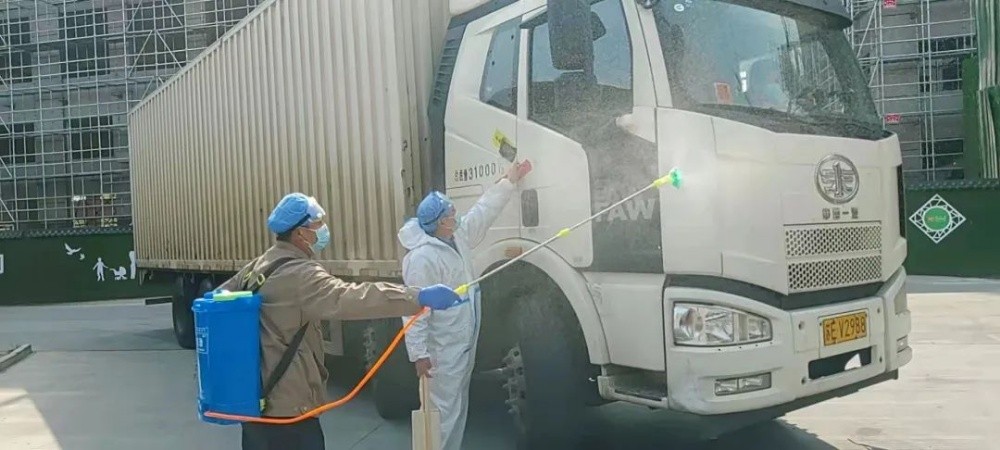 貨車司機按照政策要求嚴格執(zhí)行通行證申領(lǐng)及駕企通報備登記,進行閉環(huán)管理,并對每一輛貨車進行消毒入廠區(qū),對貨車司機提供免費送餐服務。