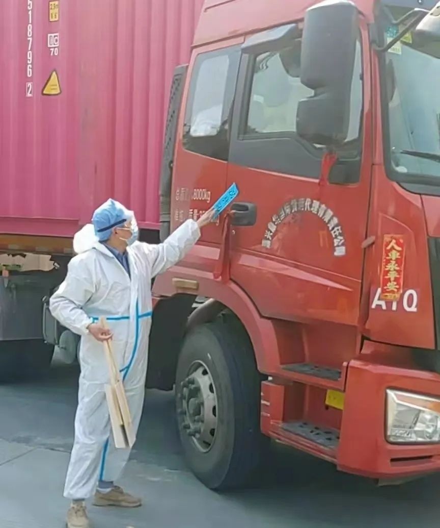 凡進入廠區(qū)的集裝箱及來廠裝貨車輛,都要求掃“嘉行碼”及行程碼查看(嘉興市外來返斜橋的進行登記),并測體溫登記,駕駛證、車牌號碼、身份證號碼、進廠時間、離廠時間等都要求填寫完整記錄。(由于貨車封閉管理所有駕駛員信息由單證部反饋管理部,由保安核對統(tǒng)一填寫登記,對嘉興市市外車輛進行車門封條張貼)