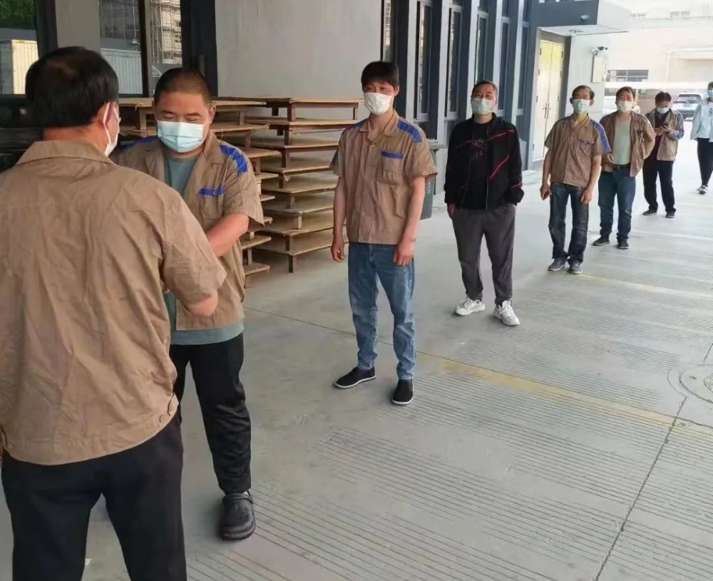 針對企業(yè)員工,定期配發(fā)口罩,要求每天戴口罩上班,由各部門負責人每天對員工的“嘉行碼”、行程記錄、核酸檢測情況進行檢查;針對工作環(huán)境,各部門對車間、辦公室、食堂、衛(wèi)生間等公共區(qū)域每2天進行消毒一次,餐廳就餐實行部門錯時分4批就餐,地上標1米外區(qū)間標識,有序排隊自帶餐盆就餐,桌上貼有標識,禁止互相聊天,提升文明安全等級。