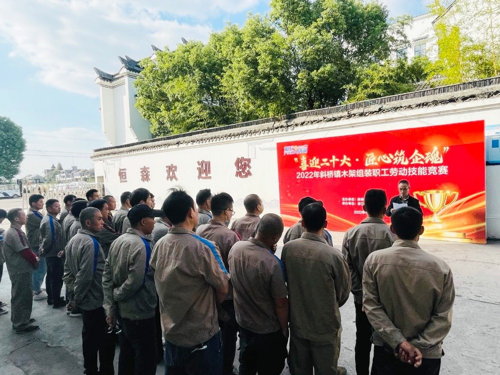 為提升職工勞動技能水平,形成創(chuàng)先爭優(yōu)、比學(xué)趕超的競爭氛圍,一場以“喜迎二十大 匠心筑企魂”為主題的2022年斜橋鎮(zhèn)木架組裝勞動技能競賽在恒森公司組裝車間拉開戰(zhàn)幕,來自組裝一車間、二車間和打樣車間的26名技能型員工報名參賽。