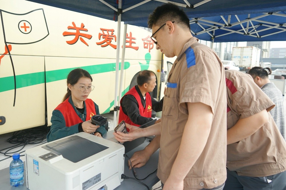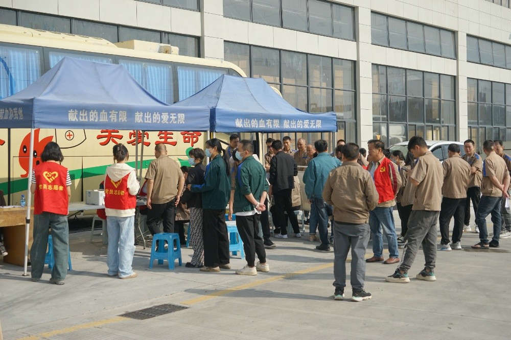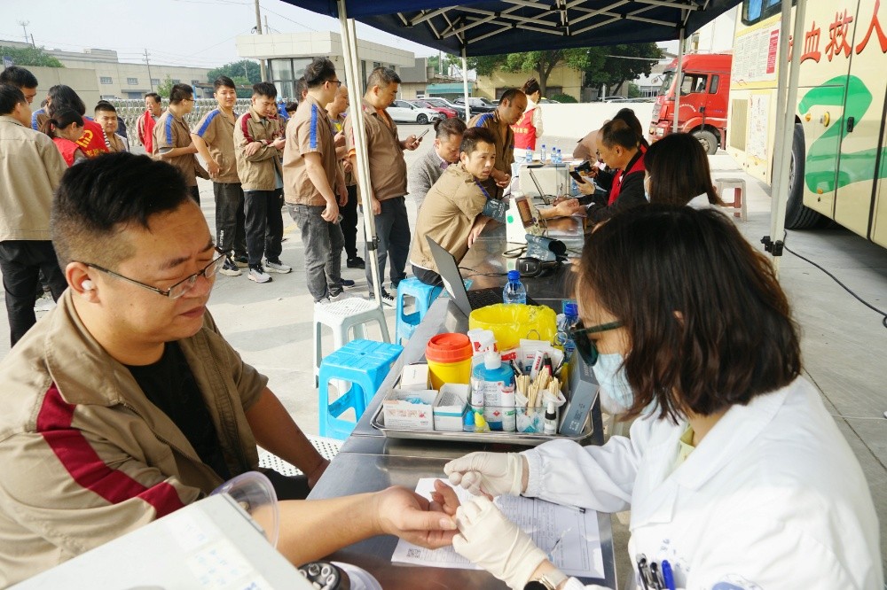 當天上午,整個廠區洋溢著愛的暖流。只見大家在采血車前有序填寫獻血登記表、測量血壓、征詢體檢、初篩采樣。隨后合格者上車獻血,奉獻愛心。