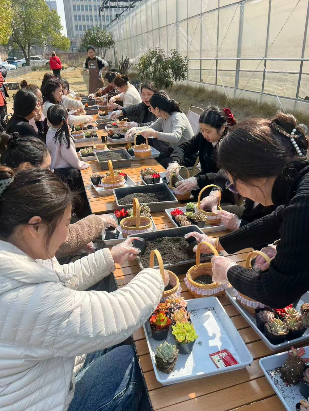 3月7日,卡雷諾公司女員工們懷揣著美好的心情,伴隨著明媚陽光,相約愛多肉花卉園藝現場。參觀園內五花八門的多肉植物,并親手將多肉組裝成自己喜歡的樣子。大家喜形于色,沉浸在快樂的DIY創作里。