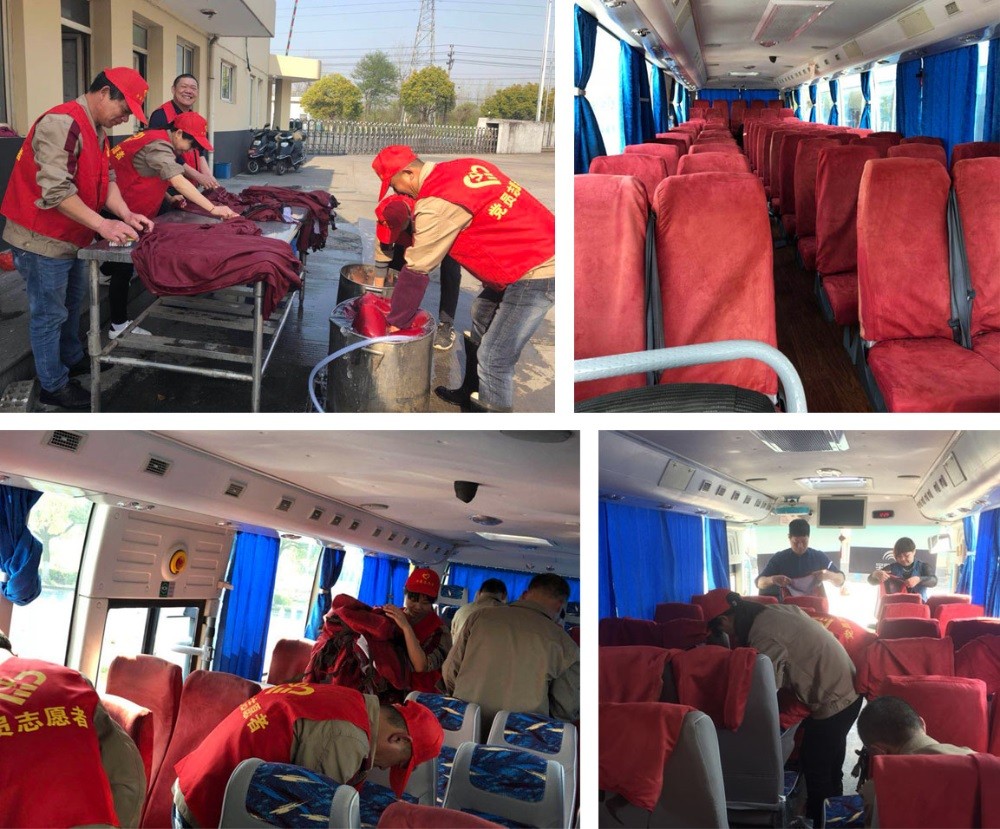 在大家一個上午團結(jié)認真的清洗下,134套座椅套清洗干凈,晾曬完成。下午三點,整潔而又鮮亮的座椅套“各就各位”被安裝上座位,班車車廂舊貌換新顏,同志們都感到很欣慰!他們以勞動為榮,樂在其中,能吃苦,作奉獻,體現(xiàn)了恒森支部的號召力和精神風(fēng)貌。